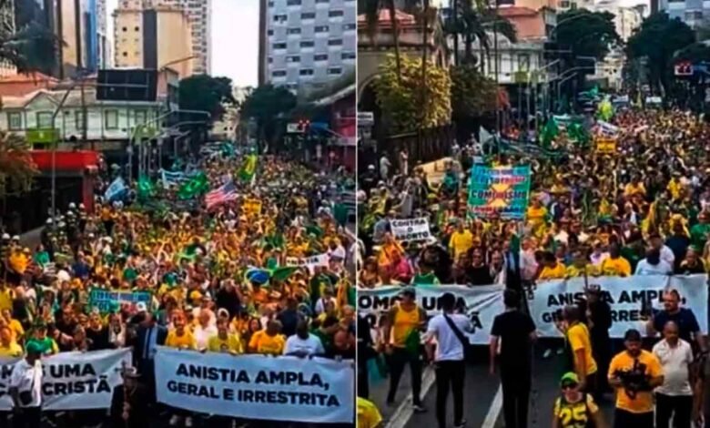 Ato pela anistia reúne apoiadores de Bolsonaro na Avenida Paulista