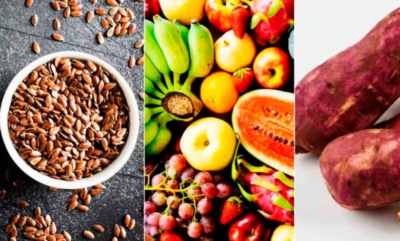 Semente, fruta, batata-doce: