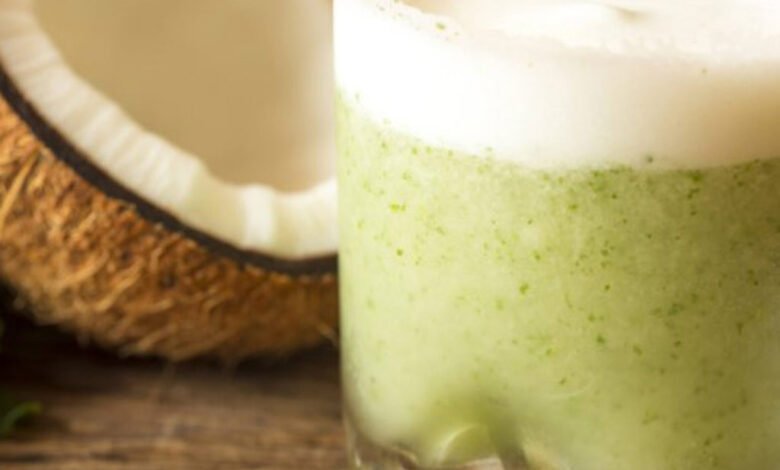 Suco de água de coco, abacaxi, hortelã e gengibre