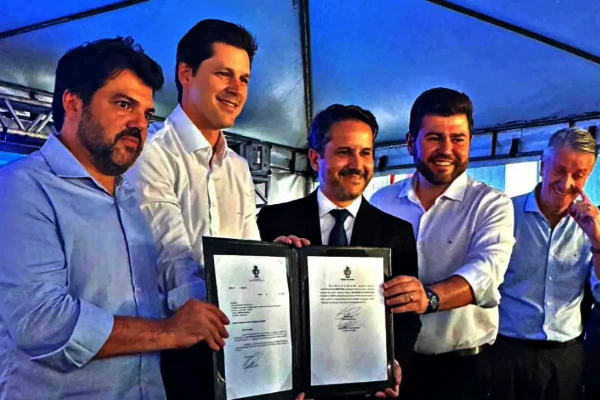 O evento ocorreu em um palco montado em frente à sede da Associação Comercial e Industrial de Anápolis (ACIA) e reuniu lideranças políticas, empresariais, representantes de entidades de classe e a imprensa.