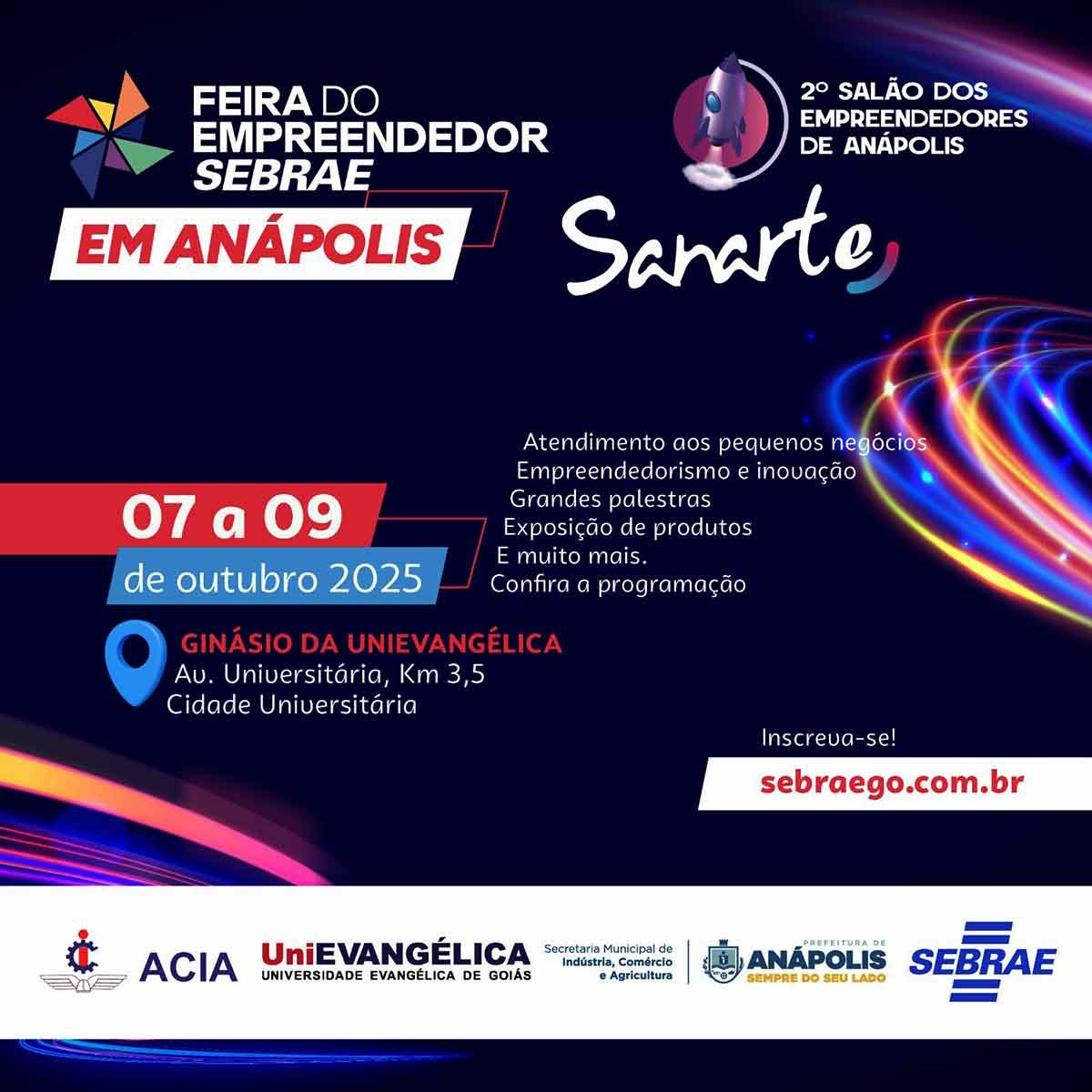 Realizada pelo Sebrae Goiás, a Feira conta com o apoio da Associação Comercial e Industrial de Anápolis, ACIA; da UniEVANGÉLICA, da Prefeitura de Anápolis, por meio da Secretaria Municipal de Indústria, Comércio e Agricultura, reforçando a união de forças em prol da inovação, do fortalecimento dos pequenos negócios e da geração de oportunidades para empreendedores locais.