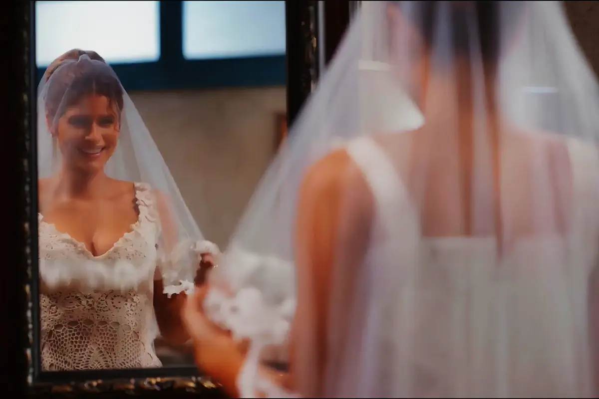O vestido de noiva, delicado e marcante, chama a atenção logo nas primeiras imagens.