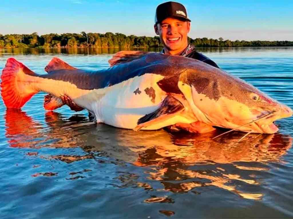 Empresário goiano recebe placa de recorde mundial após pescar pirarara de mais de 70kg