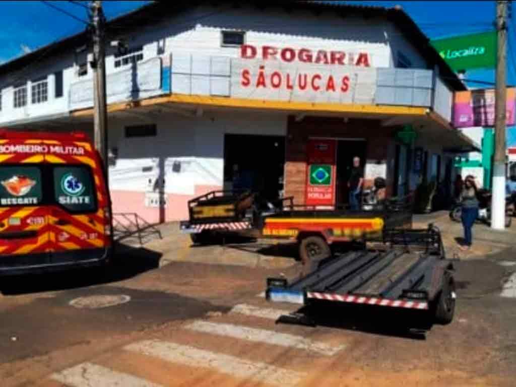 Carretinha se solta de carro, invade farmácia e derruba cliente; vídeo