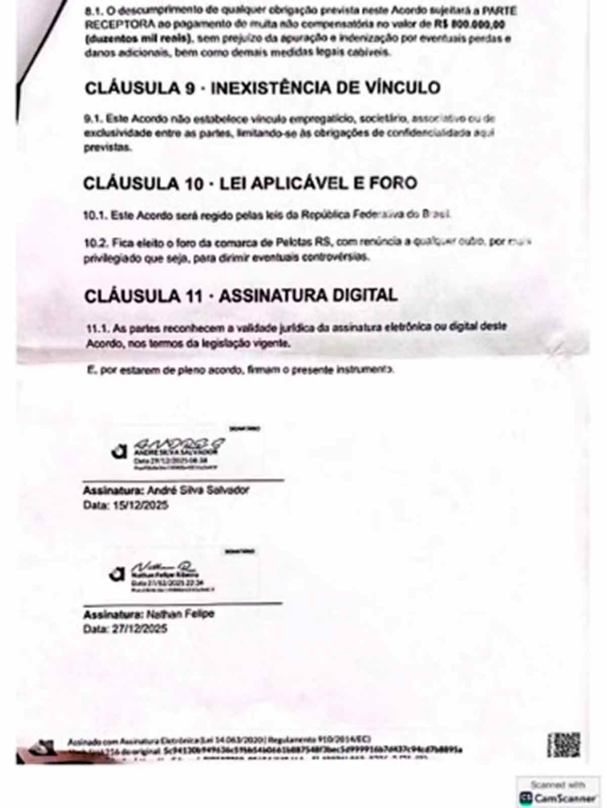 Nathan assinou o contrato em 27 de dezembro (veja o inteiro teor abaixo) e, no mesmo dia, fez uma reunião virtual com Salvador, em que a reportagem do Metrópoles foi usada como exemplo de conteúdo que precisava ser difundido, sempre lançando dúvidas sobre a ação do Banco Central que levou à liquidação do Master.