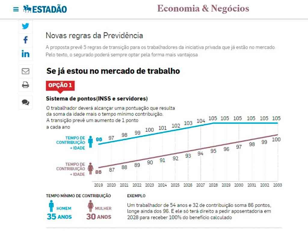 Quem já está no mercado de trabalho poderá escolher a mais vantajosa entre as regras de transição. Durante esse período, o tempo mínimo de contribuição permanece em 15 anos para homens e mulheres.