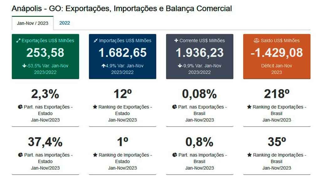 No penúltimo mês do ano, a balança comercial de Anápolis sinaliza que o fechamento de 2023 deverá superar a casa de US$ 2 bilhões.