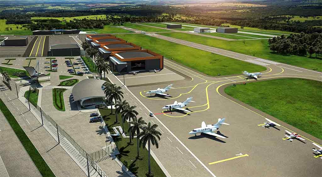 Nesta fase, também serão entregues a área de embarque e desembarque e 72 lotes entregues de 1.000m² a 1.500 m² de área, com toda a infraestrutura necessária para a instalação de hangares e serviços ligados à aviação.