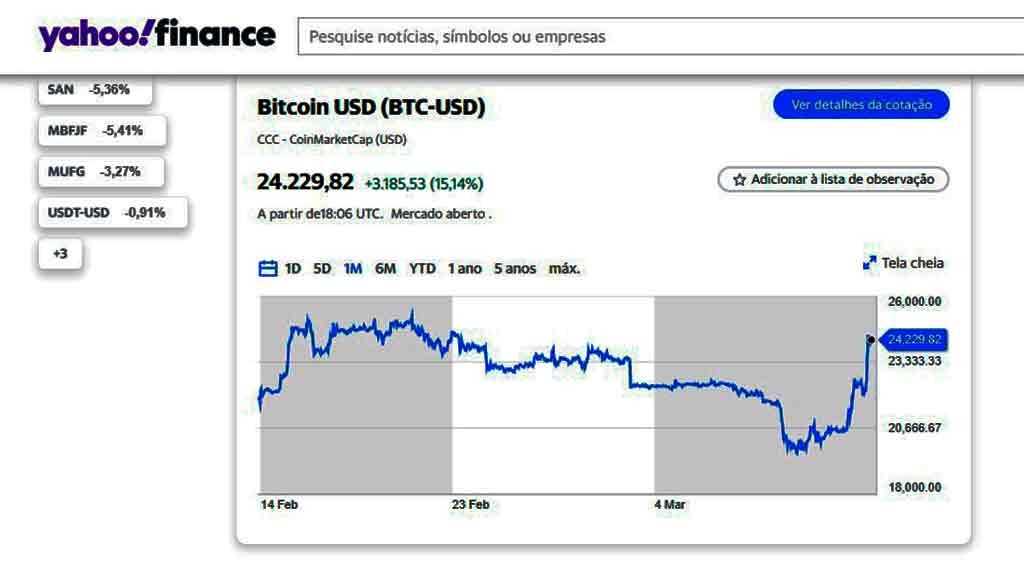subiu quase 10%, para US$ 24.300, uma alta de três semanas.