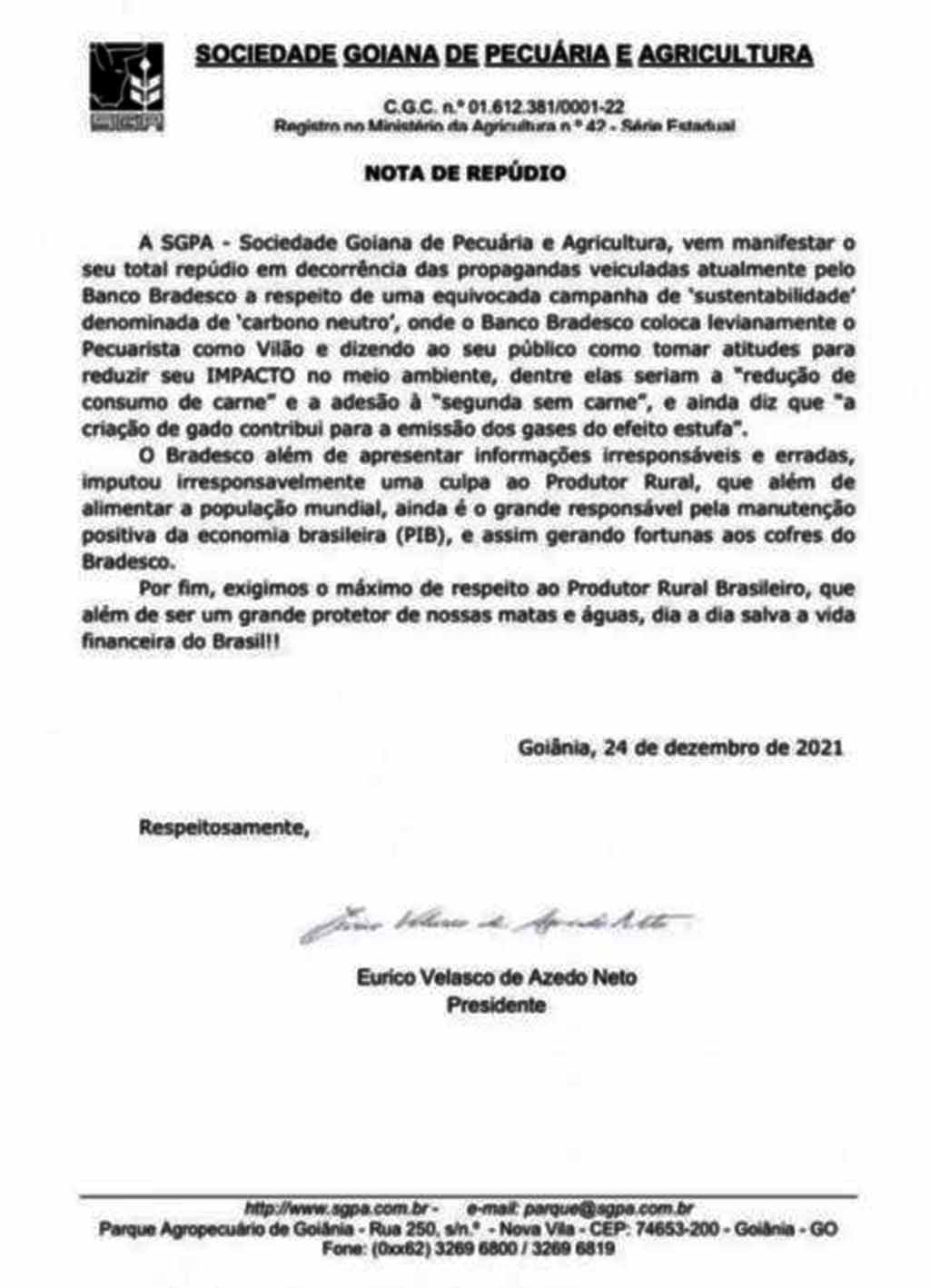A Associação dos Criadores de Nelore do Brasil também emitiu uma nota de repúdio: