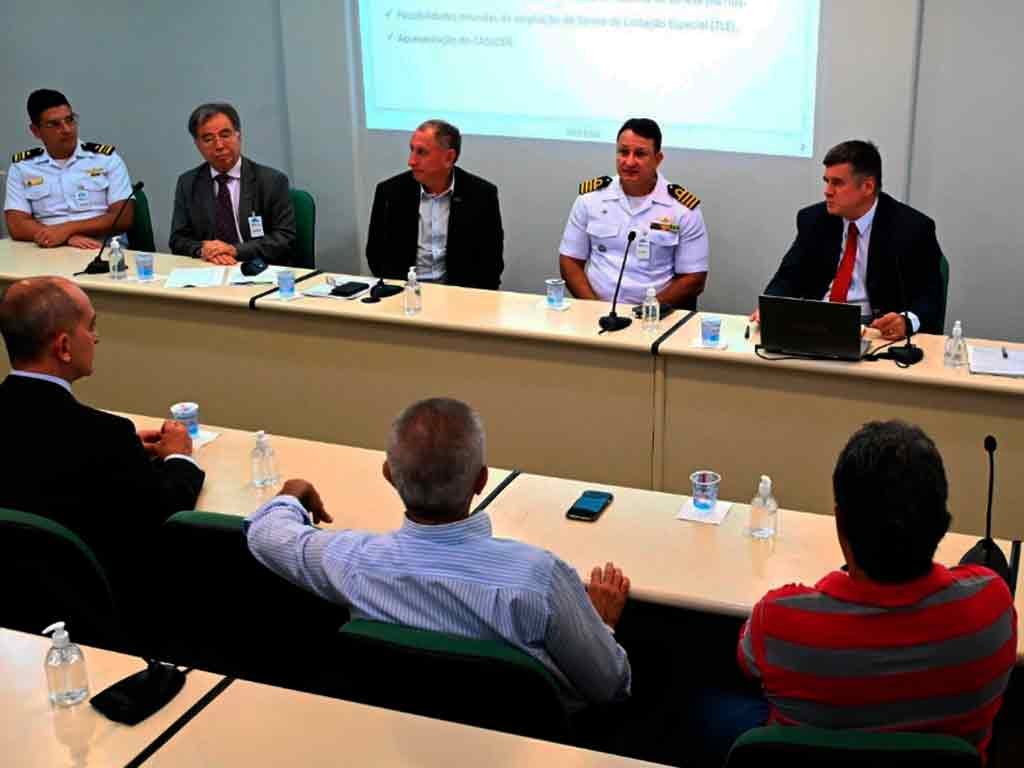 com representantes do Ministério da Defesa capitão-de-mar-e-guerra Mário Márcio Cardoso Teixeira, o coronel-aviador da reserva Hilton Grossi Silveira e o capitão-de-corveta David Ventura Cardoso foi acompanhada pelos presidentes do Sindicato das Empresas de Extração de Areia do Estado de Goiás (Sindareia), Luiz Carlos Borges; e da Câmara da Indústria da Construção (CIC) da Fieg, Sarkis Nabi Curi; pelo diretor da Associação Comercial e Industrial de Anápolis (Acia), Álvaro Dantas; e pelo assessor executivo do COMDEFESA-GO, Baltazar Santos.
