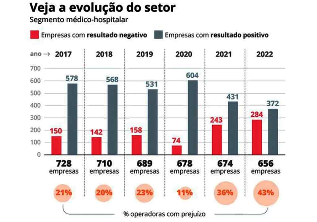 das operadoras médico-hospitalares terem fechado o ano com prejuízo aumenta a percepção de deterioração do resultado do setor, que teve um lucro recorde de R$ 18,7 bilhões em 2020 — devido à redução de procedimentos durante a pandemia — e de R$ 3,8 bilhões em 2021.