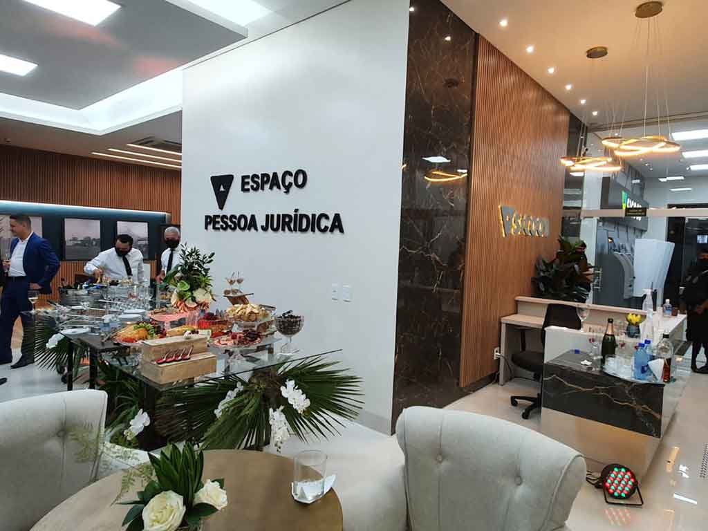 Os dois espaços possuem, cada um, seus próprios caixas, atendentes, gerentes, salas de negócios e hall de espera. Os ambientes foram projetados pela arquiteta Rinara Assunção.