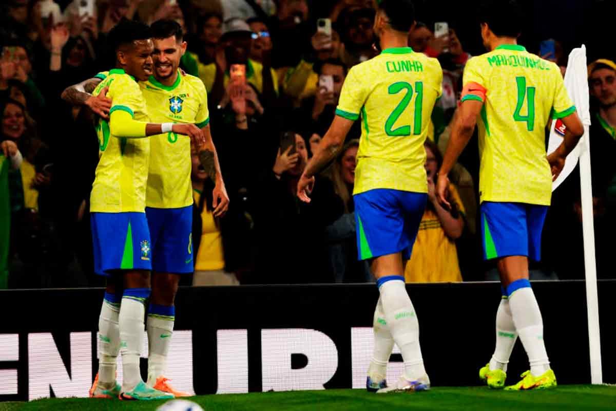BRASIL: Ederson; Éder Militão, Marquinhos, Gabriel Magalhães (Wesley) e Alex Sandro (Caio Henrique); Casemiro e Bruno Guimarães; Estêvão (Luiz Estevão), Matheus Cunha (João Pedro), Vini Jr (Fabrício Bruno) e Rodrygo (Lucas Paquetá). Técnico: Carlo Ancelotti.