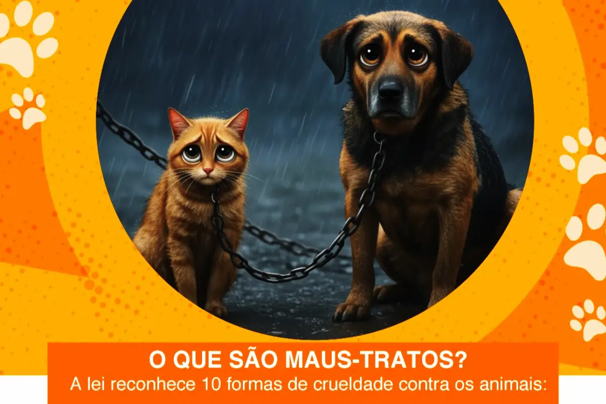 A cartilha também destaca práticas que configuram maus-tratos, como abandono, agressões, envenenamento, privação de alimento e água, manutenção em ambiente insalubre, acorrentamento permanente e exposição a condições climáticas extremas.
