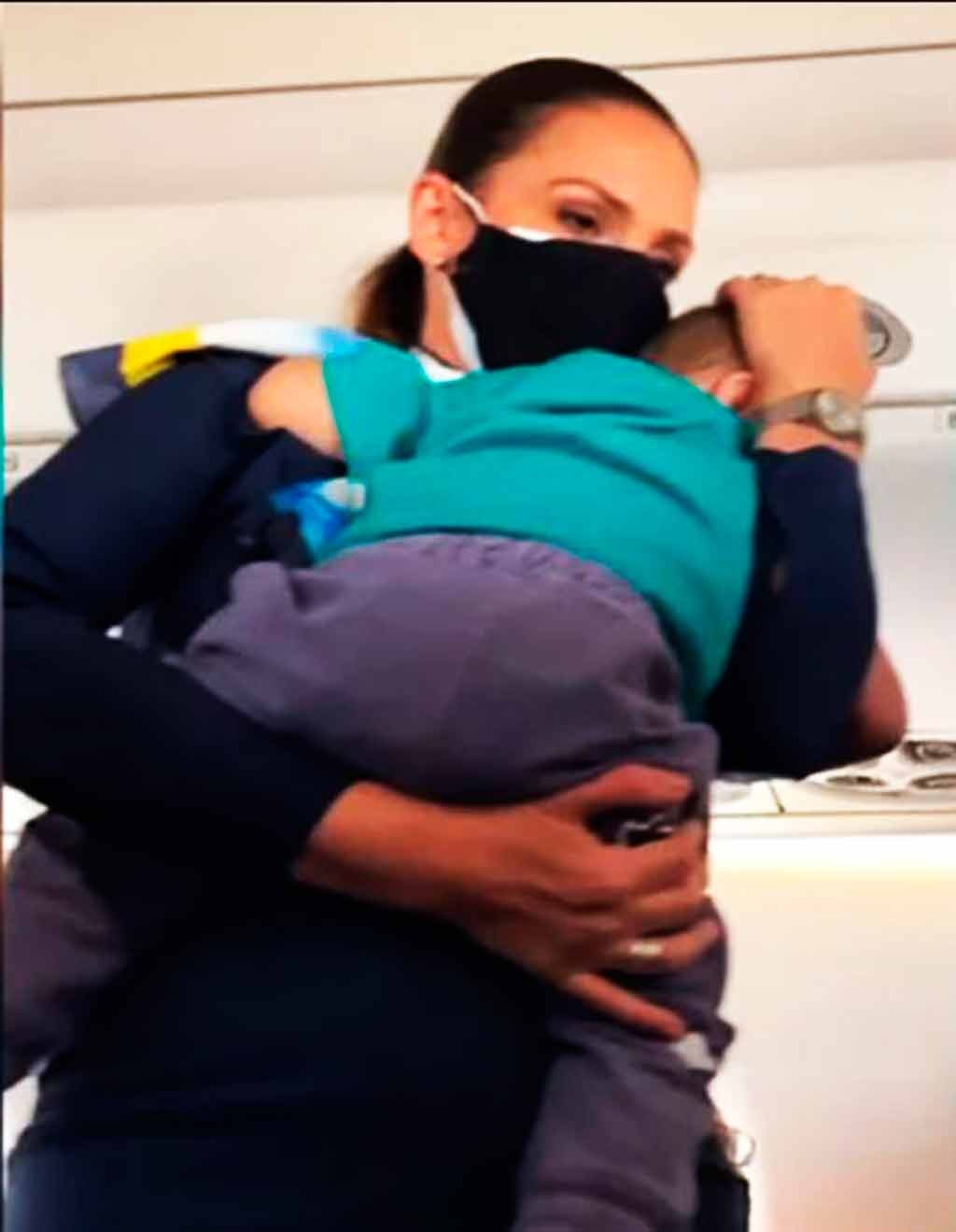identificou a comissária, Edwina, e o pequeno passageiro, Andrei,