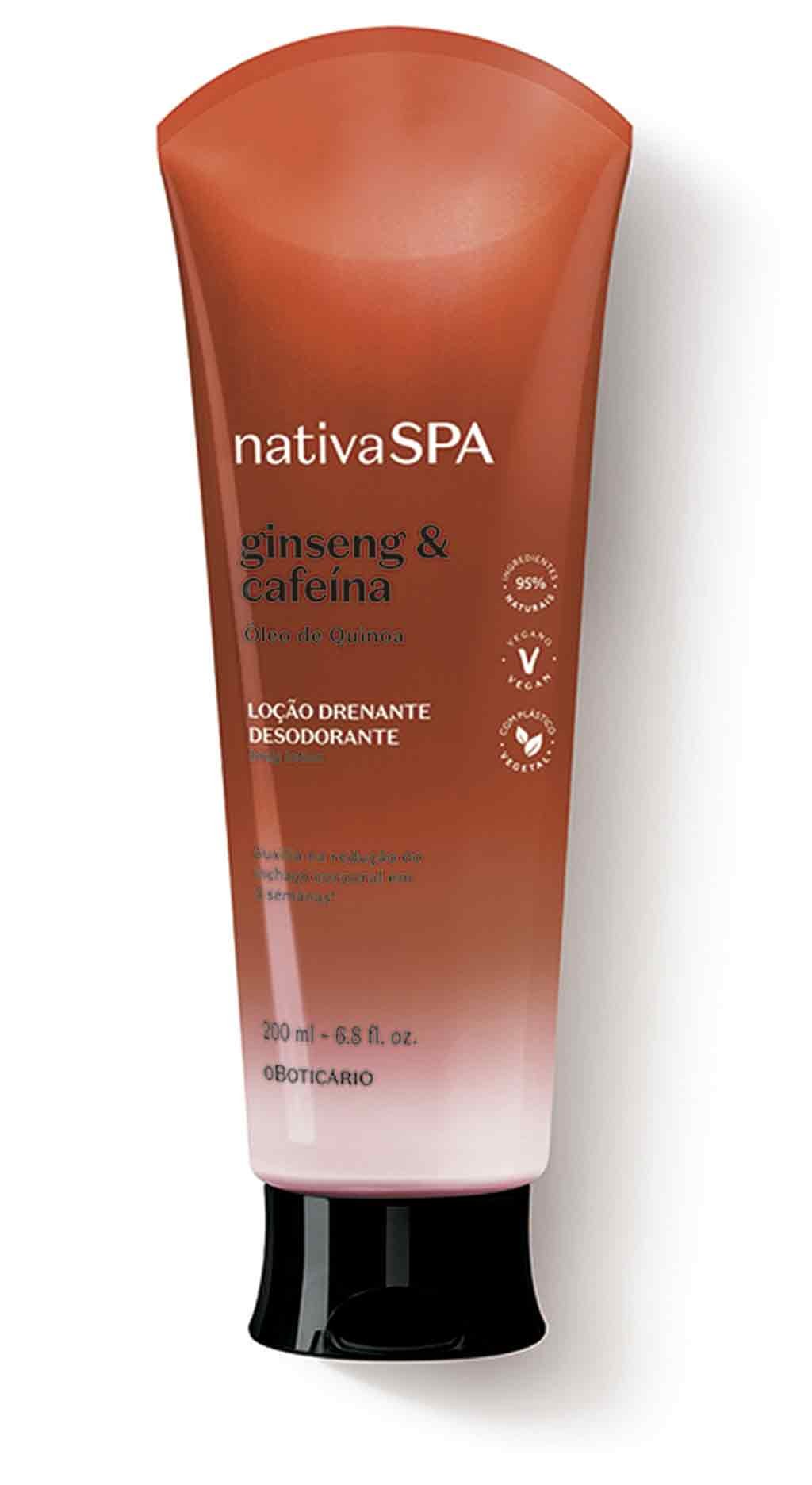 em dia e já preparar um detox pós-Ano-Novo, Nativa SPA apresenta descontos de até 50% em produtos das linhas Baunilha Real e Ginseng e Cafeína, lançamento do último ano que apresenta, com inovação, uma fórmula anti-inchaço e proporciona alívio e conforto para a pele com fragrância deliciosa e envolvente. A Loção Drenante Desodorante Corporal Nativa SPA Ginseng e Cafeína, aliada a uma rotina de massagens, reduz visivelmente o inchaço no corpo em três semanas e mantém a pele mais firme e tonificada de R$ 49,90 por R$ 24,90. Já o Gel Esfoliante Corporal Nativa SPA Ginseng e Cafeína desodoriza a pele com mistura de notas doces e frescas e sai de R$ 66,90 por R$ 39,90.