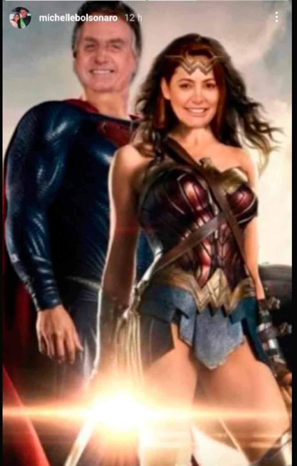 Michelle compartilha montagem de Bolsonaro como o Superman