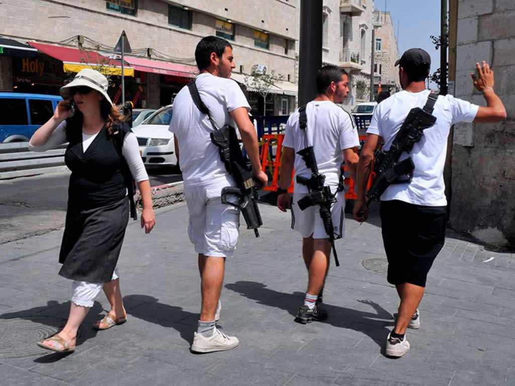 Para estrangeiros, pode parecer que Israel é um país extremamente armado. Isso se dá porque soldados armados são vistos com frequência nas ruas e porque integrantes de tropas de combate carregam suas armas o tempo todo.