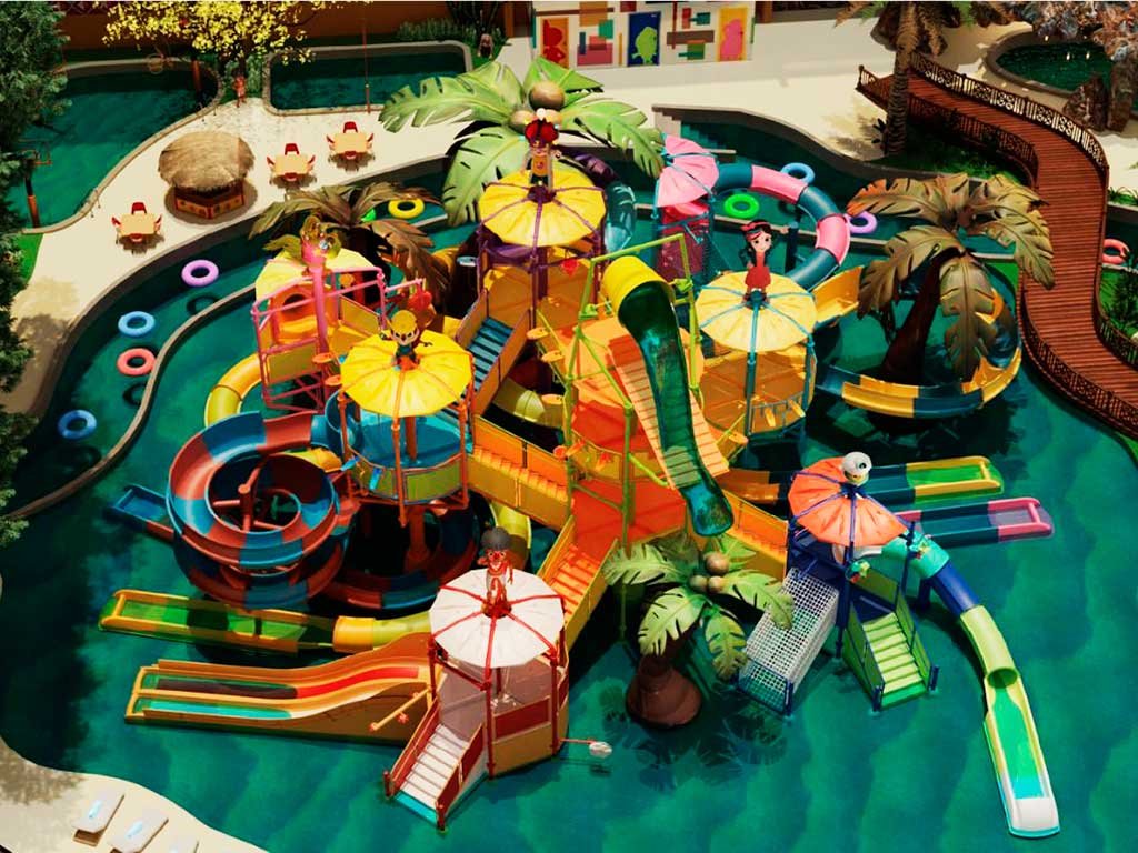 O Aquapark é um espaço imersivo e vibrante, concebido estrategicamente como o lar dos Taualegres.