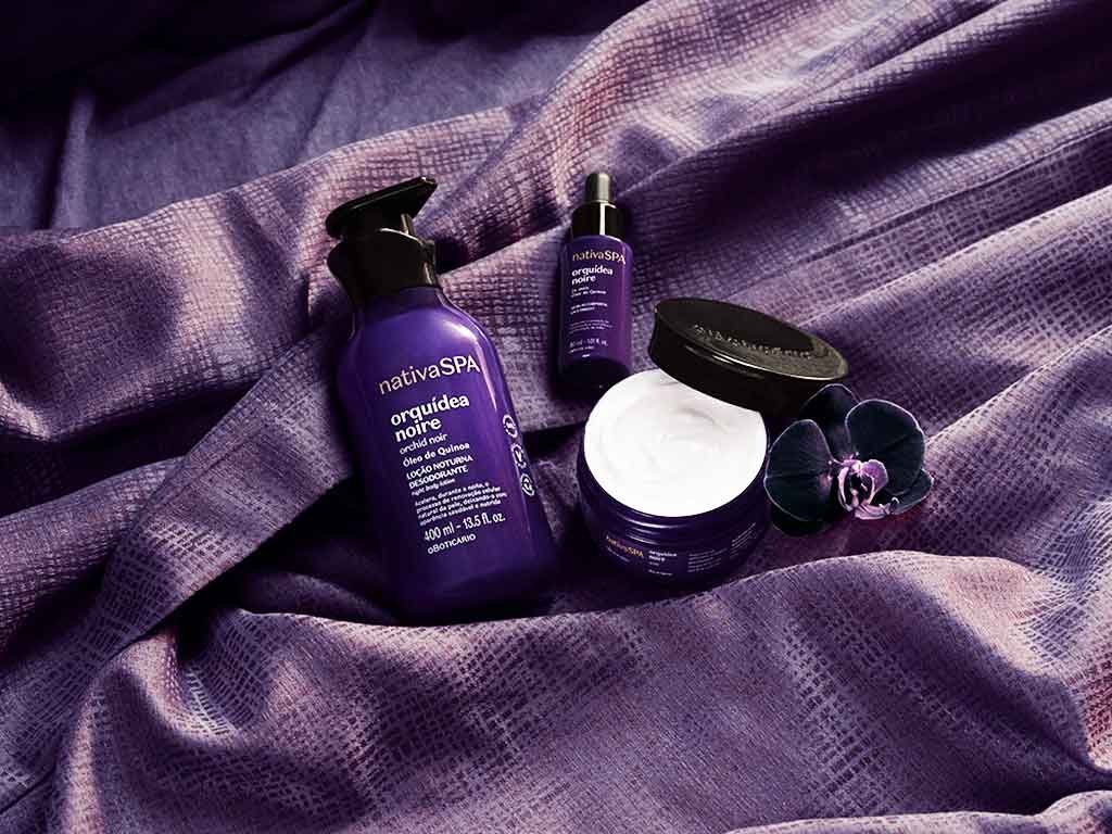 Pensando nisso, o Boticário lança a linha Nativa SPA Orquídea Noire com ativos que entregam hidratação e perfumação exclusiva em sua máxima potência para o cuidado noturno.