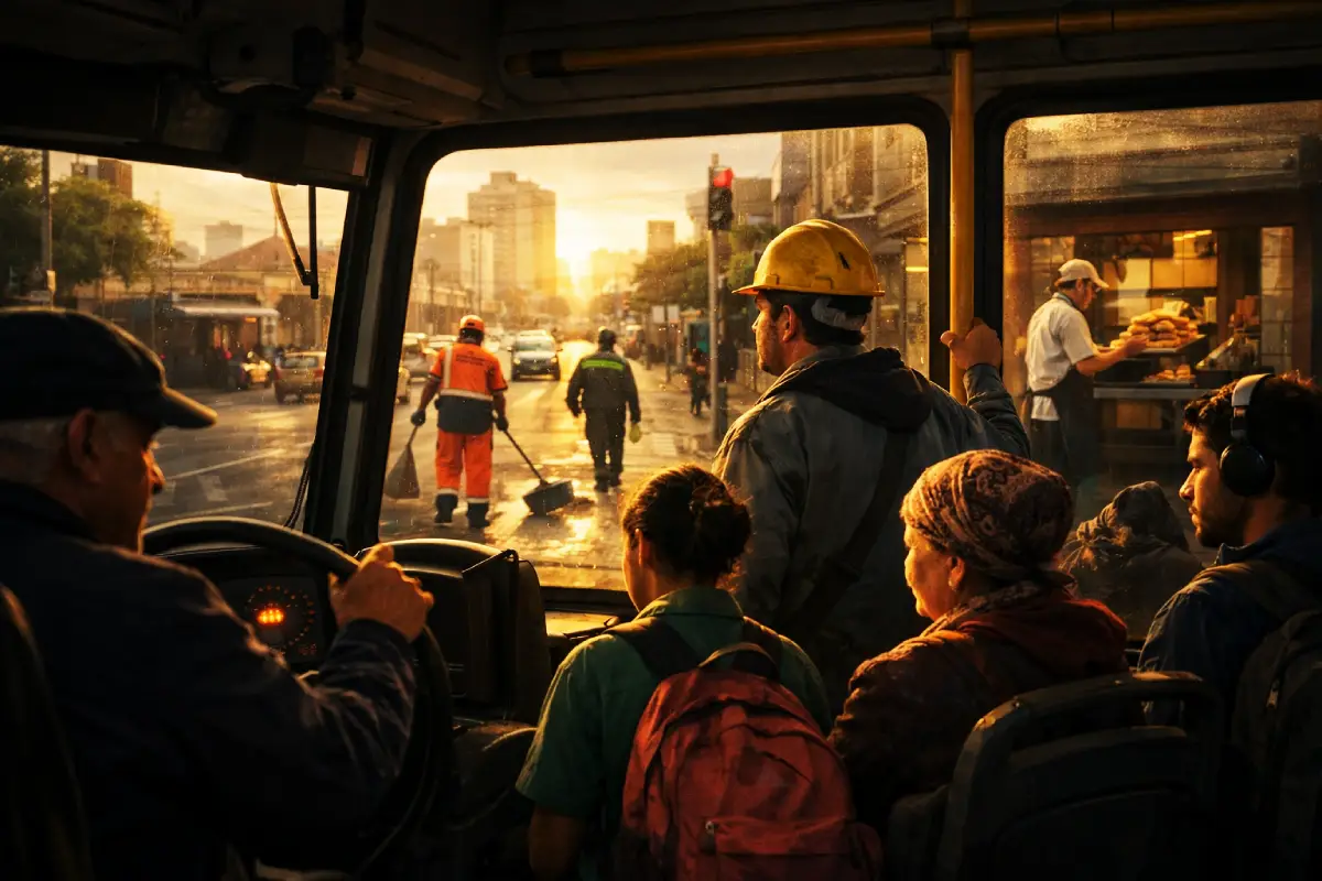 A vida acontece no trajeto da zona norte até o centro de Porto Alegre, dentro de uma lotação meio cheia, com gente segurando café na mão e pensamentos que ninguém vê.