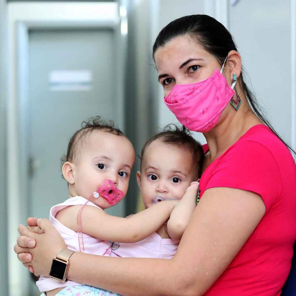 Família das gêmeas, de um ano e quatro meses, não tem condições de comprar o alimento essencial para a nutrição delas. Elas aguardam uma operação no HMI