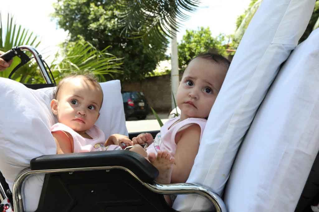 Laura e Laís estão com um ano e quatro meses e recebem o apoio do Governo de Goiás e OVG desde os primeiros dias de vida. As siamesas nasceram de 36 semanas, unidas pelo abdômen e bacia, e compartilham a bexiga e os intestinos grosso e delgado. As meninas são de uma família simples, do interior da Bahia, que não tem condições de custear todos os gastos com as crianças.
