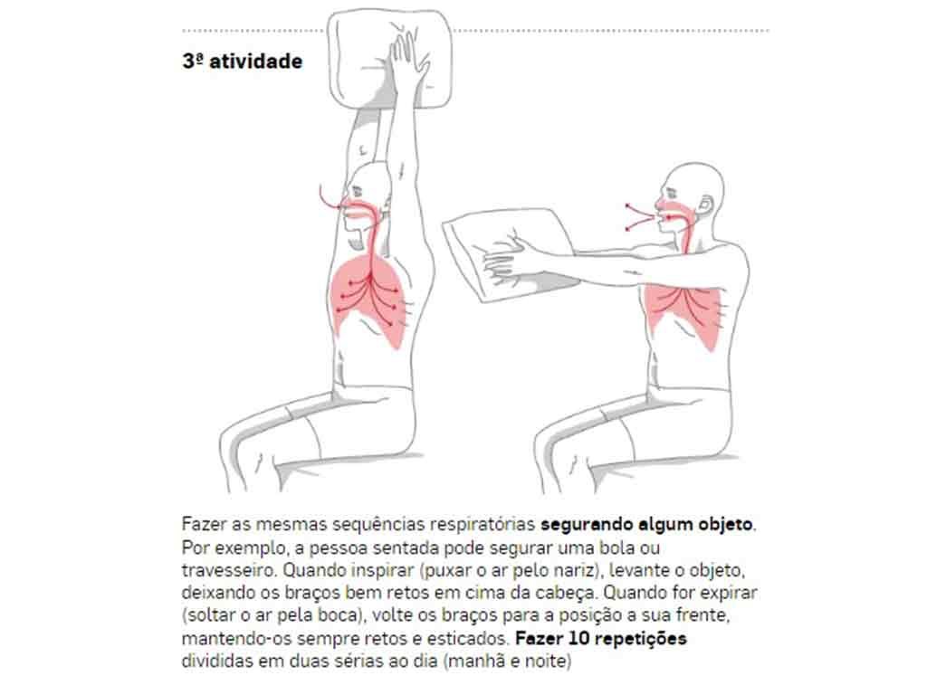 O pneumologista também orienta a pessoa – nas duas situações acima – a fazer exercícios para que a musculatura respiratória esteja bem treinada e no caso de pegar uma infecção o paciente tenha condição de um pulmão mais fortalecido.