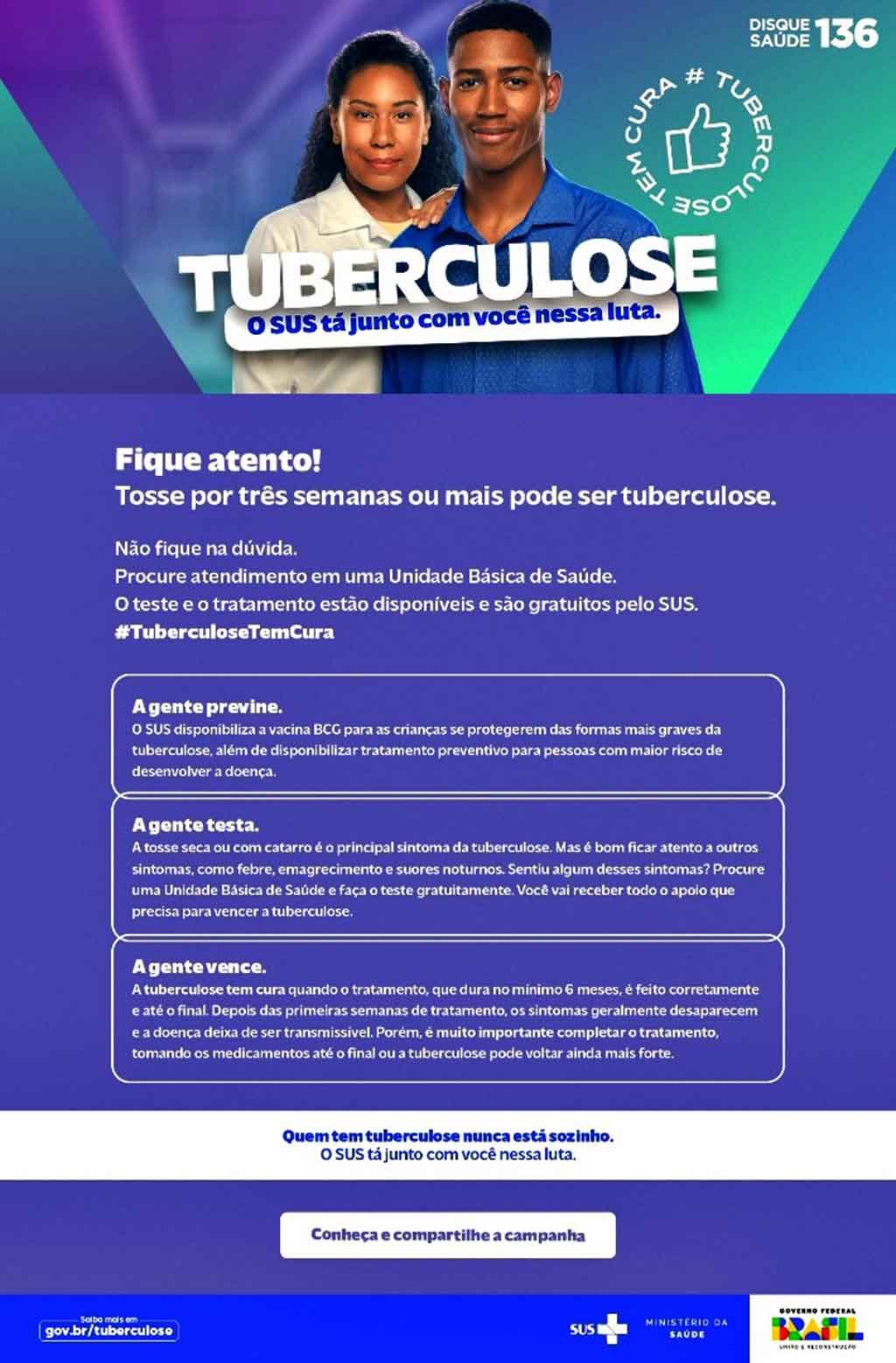 a doença continua sendo um grave problema de saúde pública no Brasil e, segundo a Organização Mundial da Saúde (OMS), a tuberculose permanece entre as enfermidades infecciosas que mais matam no mundo, atrás apenas da Covid-19.