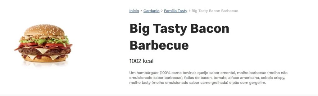 Todo mundo sabe, ou pelo menos a maioria das pessoas, que o Big Tasty Bacon Barbecue é altamente calórico, contendo um hambúrguer bovino, queijo sabor emental, molho barbecue, fatias de bacon, tomate, alface americana, cebola crispy, molho tasty e pão com gergelim, isso tudo garante níveis elevados de gorduras saturadas e sódio não saudáveis.