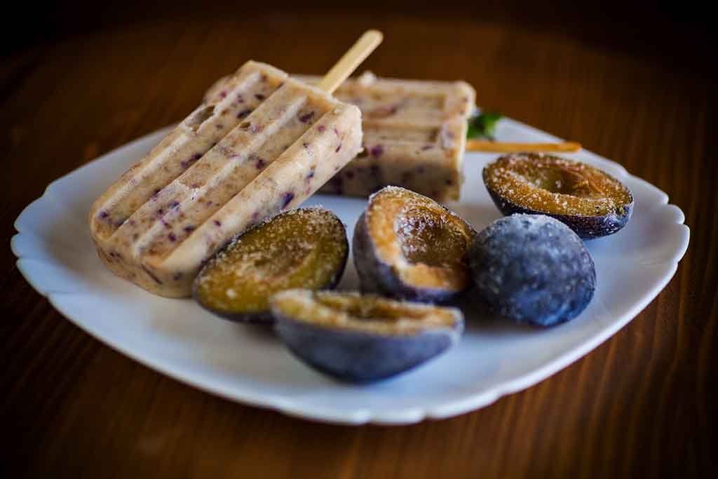 Leve a ameixa, o suco de limão e o açúcar para a panela em fogo baixo. Mexa bem até formar uma geleia. Bata no liquidificador a geleia de ameixa com 2 copos de iogurte natural integral. Coloque em forminhas de picolé ou em copos plásticos e leve para gelar por pelo menos 2 horas antes de consumir. Rende 4 a 5 porções, variando de acordo com o tamanho da forminha de picolé ou copo.