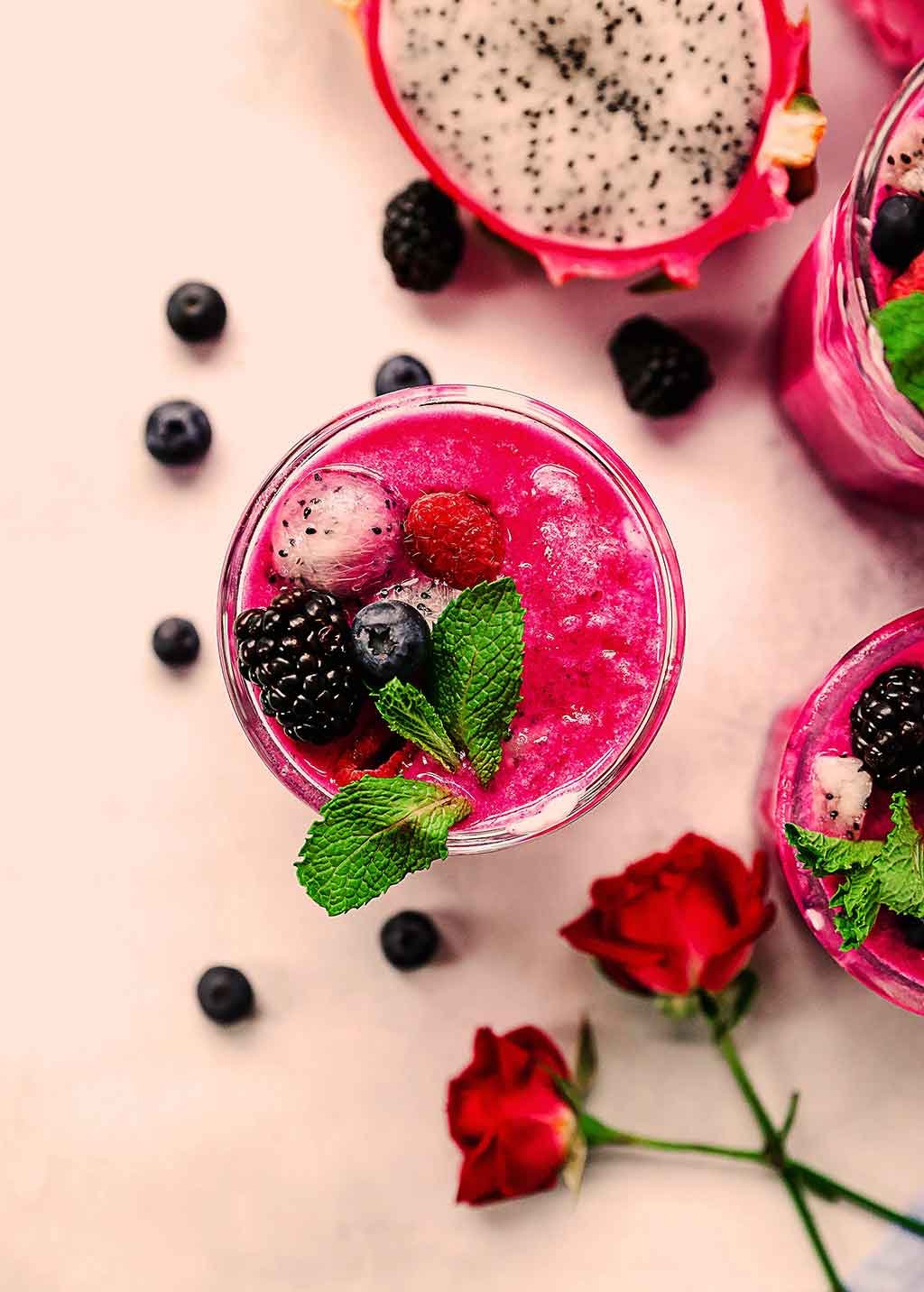 Bata tudo no liquidificador ou mixer e sirva em seguida. Rende 2 porções
