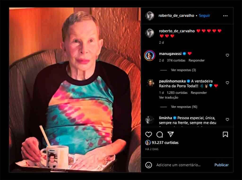 pessoal no Instagram, Roberto publicou uma foto da companheira, acompanhado de vários emojis de coração na legenda.