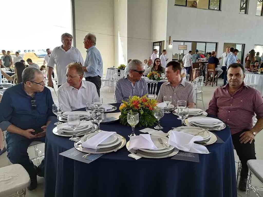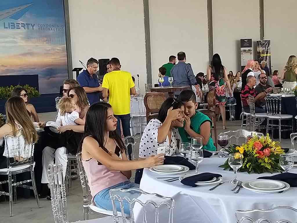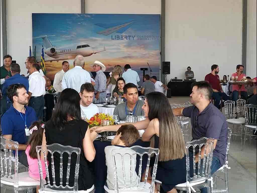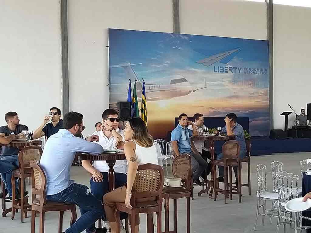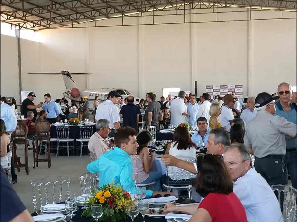 Recepcionados com coquetel glamoroso no grande hangar já construído no local a comunidade presente conheceu um hangar e pistas ja determinadas para pousos de aeronaves sem o desconfortos e a burocracia de grande aeroportos.