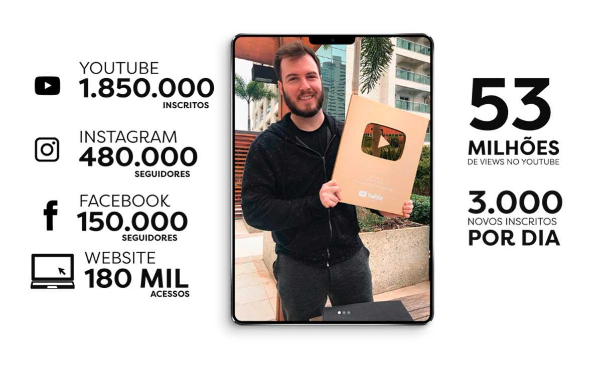 Ele atingiu sua liberdade financeira aos 26 anos e tem o sonho de proporcionar a todos os brasileiros o mesmo feito conquistado. Hoje ele já soma mais de 2 milhões de inscritos no YouTube!