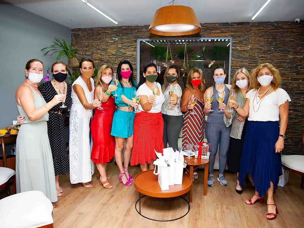 Com todos os cuidados necessários ao momento e muito carinho, as convidadas foram recebidas com frios e queijos da Dom Rico Artesanal, espumante, vinho e doces da Sweet Nana.