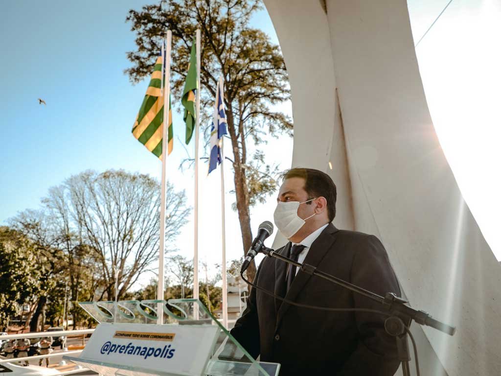 [caption id="attachment_85529" align="alignnone" width="1024"] Aniversário de Anápolis é comemorado lembrando desafios da pandemia. “A melhor forma de enfrentarmos essa pandemia e os problemas é trabalhando”,  Foto: Bruno Velasco - Dircom[/caption]