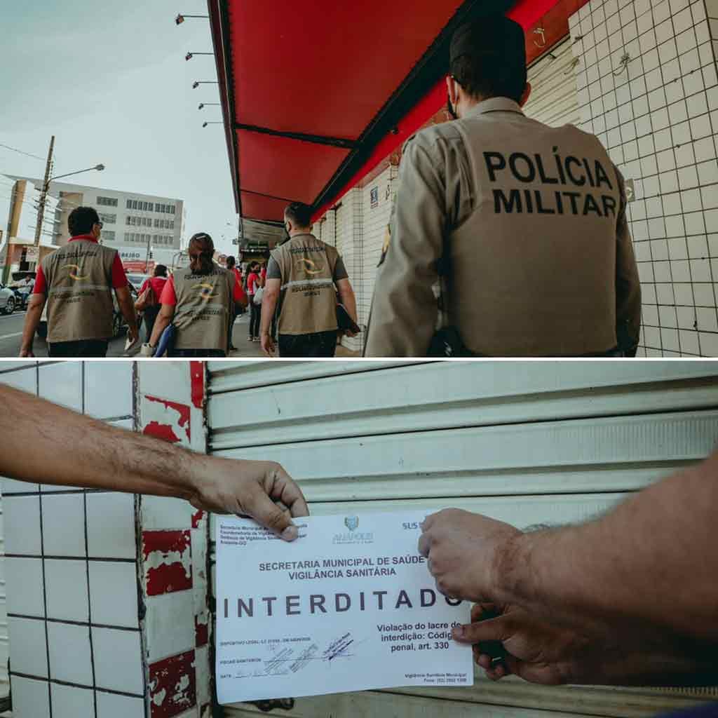 Quem passou pelo centro de Anápolis hoje pela manhã se deparou com uma cena diferente da habitual. Vários carros de polícia, sirenes ligadas e policiais entrando nos comércios acompanhados de fiscais da vigilância sanitária.