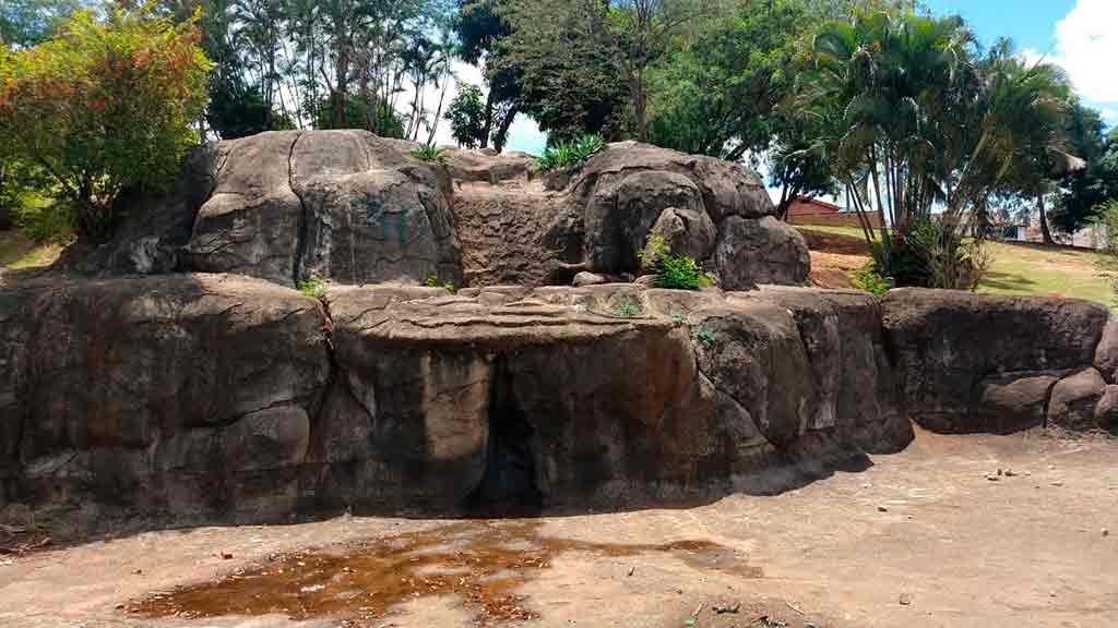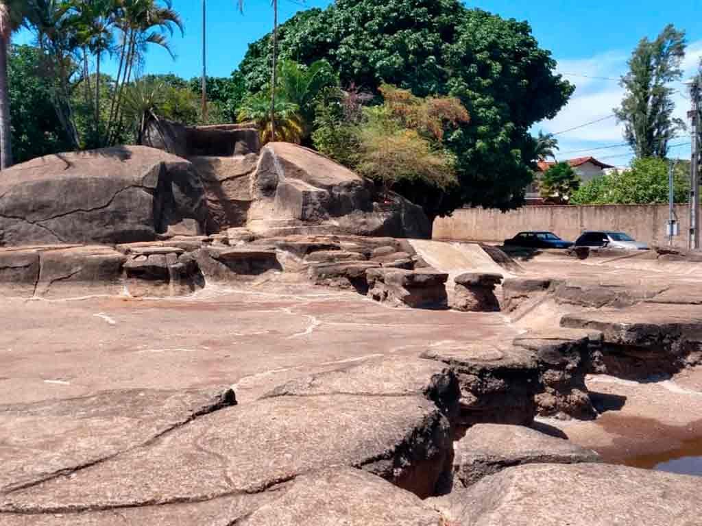 Passando pela Praça Abadia Daia, observou a Cascata sem água.