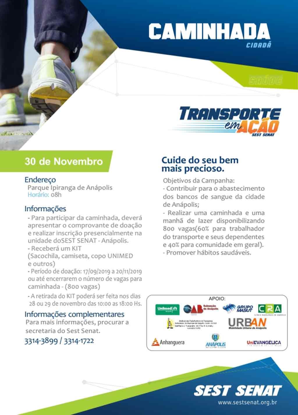 Esse é o tema da Campanha Nacional Transporte em Ação do SEST SENAT que está sendo realizada em Anápolis até o dia 30/11