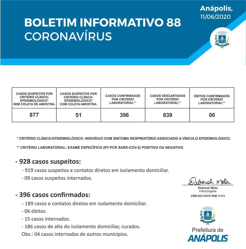 Foi confirmada a sexta morte por coronavírus de paciente morador de Anápolis. Trata-se de um homem de 46 anos que estava internado na UTI do Centro de Internação Norma Pizzari Gonçalves e faleceu na noite de ontem, 10.