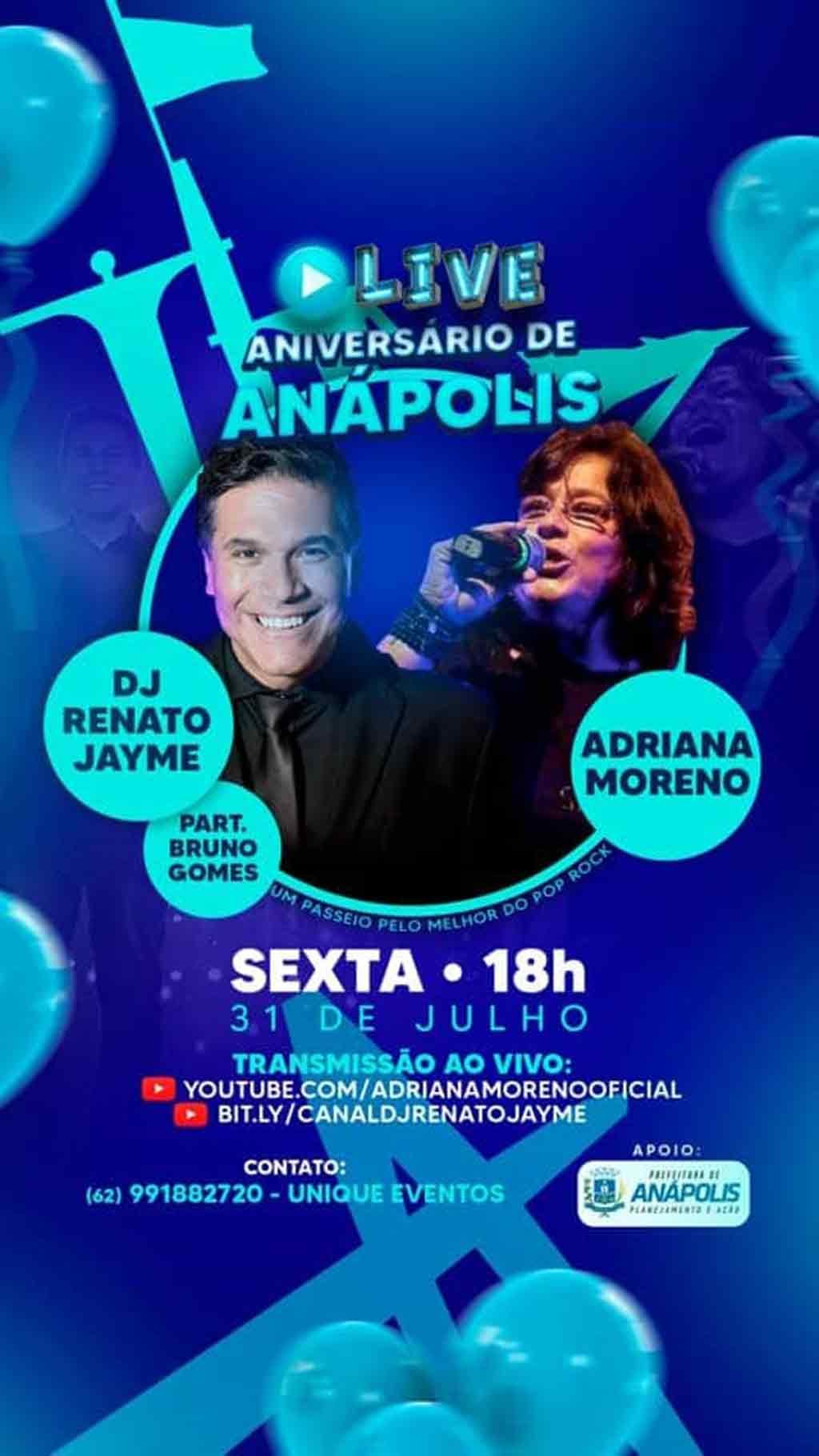 A data escolhida é também uma homenagem ao aniversário de 113 anos de Anápolis, cidade natal de Moreno.O Show conta com as participações do DJ Renato Jayme,e de Bruno Gomes, a partir das 18h.