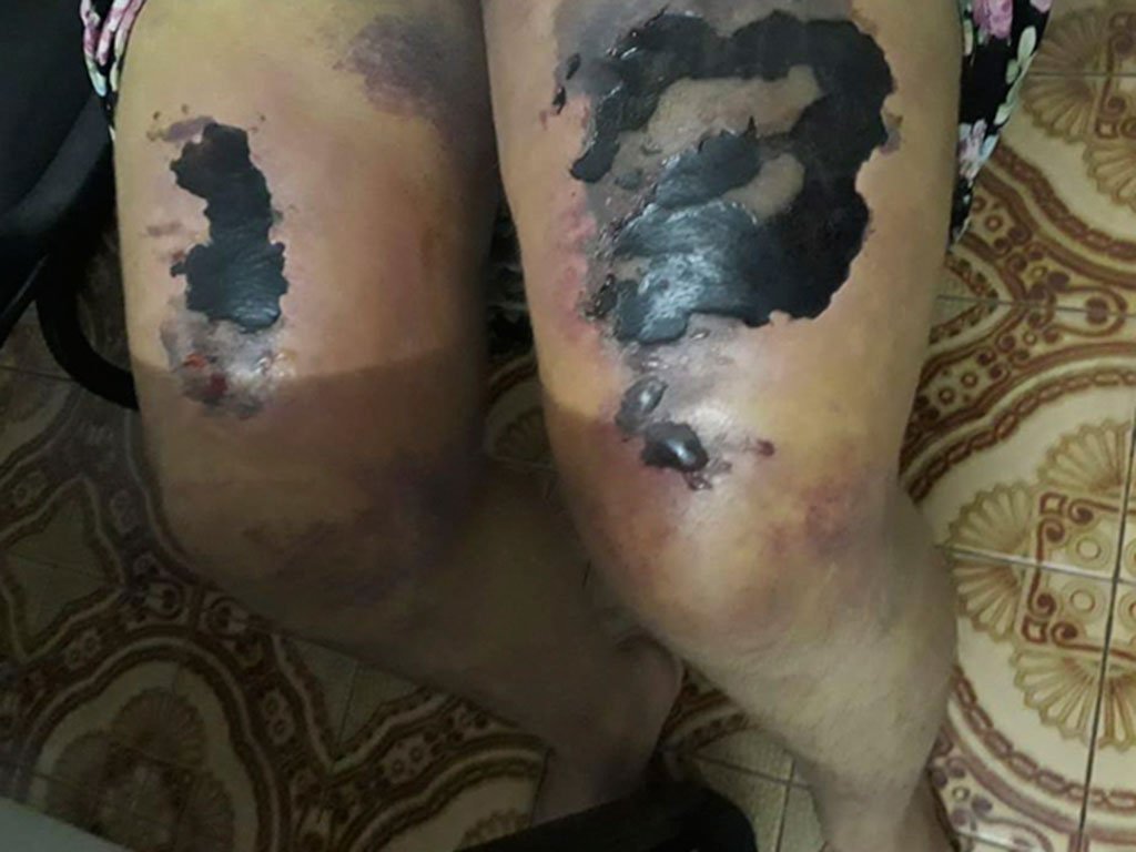 Vítima chegou à Delegacia com muitos hematomas, com uma mão quebrada e pele das pernas necrosadas