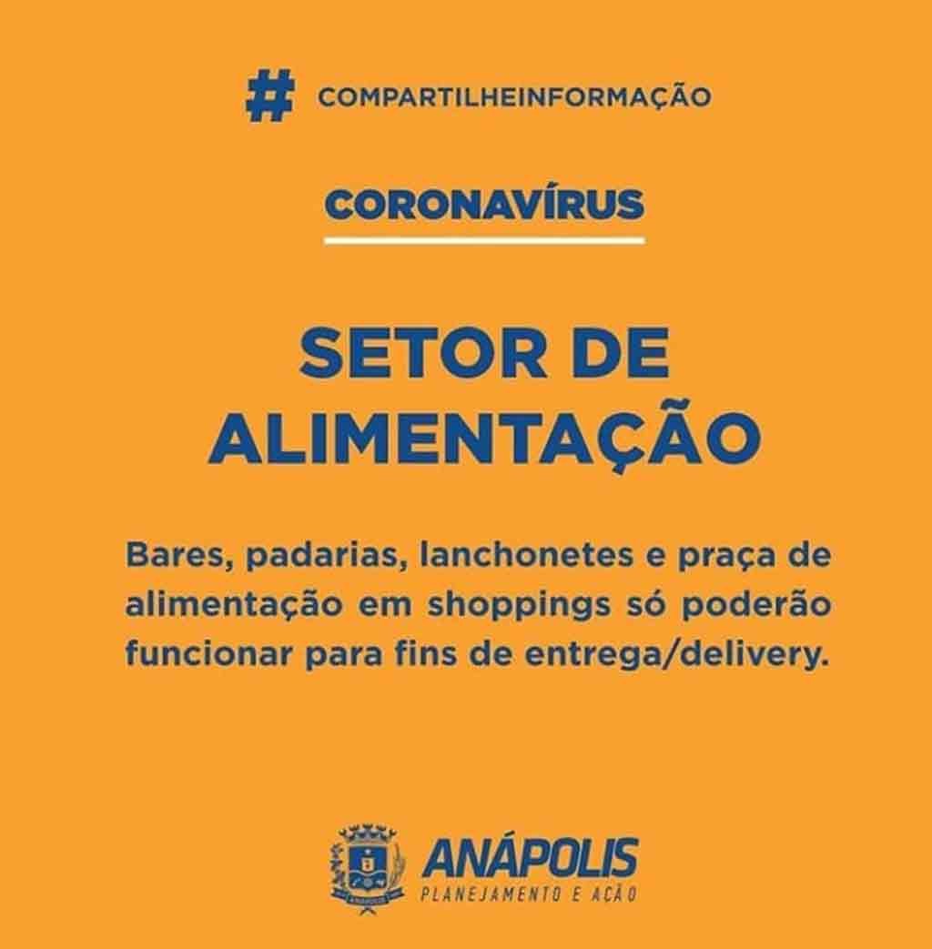 Menos de 24 horas após a confirmação do primeiro caso de covid-19 no município, a Prefeitura de Anápolis publicou dois decretos e uma portaria restringindo ou suspendendo o funcionamento de vários tipos de estabelecimentos, como bares, parques, feiras e praças de alimentação. Prefeitura Anápolis[/caption]