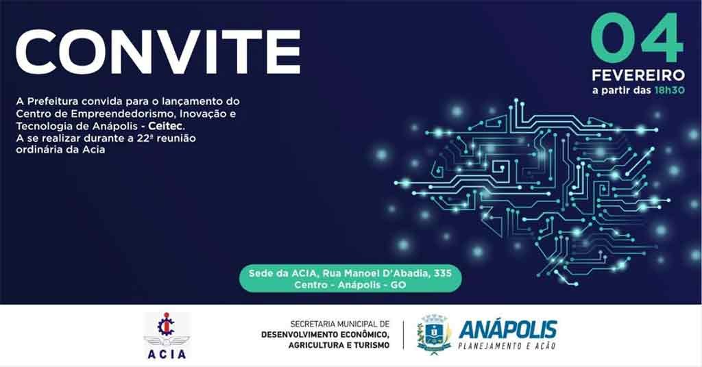 “O lançamento do Centro de Empreendedorismo, Inovação e Tecnologia de Anápolis (Ceitec), acontece na quarta-feira, 4 de março, às 18h30, na 22ª reunião ordinária da Acia.”
