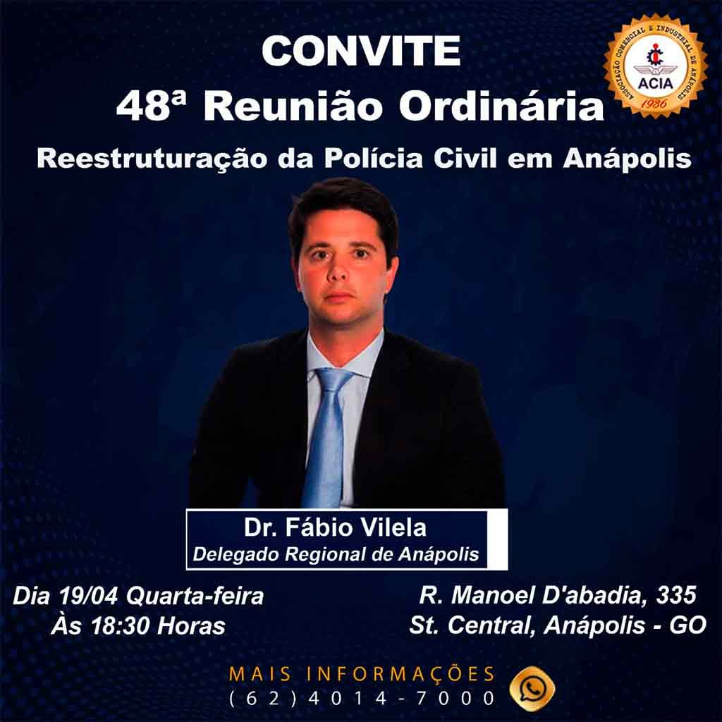 E na área de segurança pública para Anápolis, reestruturação de delegacias, criar centrais mais humanizadas e firmar parcerias público-privadas é que a Associação Comercial e Industrial de Anápolis – ACIA em nome do seu presidente Álvaro Otávio Dantas Maia tem a honra em convidar a toda a classe empresarial e toda a sociedade civil para a