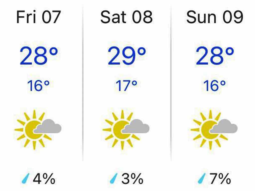 Em relação as temperaturas, essas não devem ultrapassar os 29° C esperados para a tarde deste sábado, 08. Já as mínimas de 16°C poderão ser sentidas nas madrugadas de sexta-feira (07) e domingo 09/05.