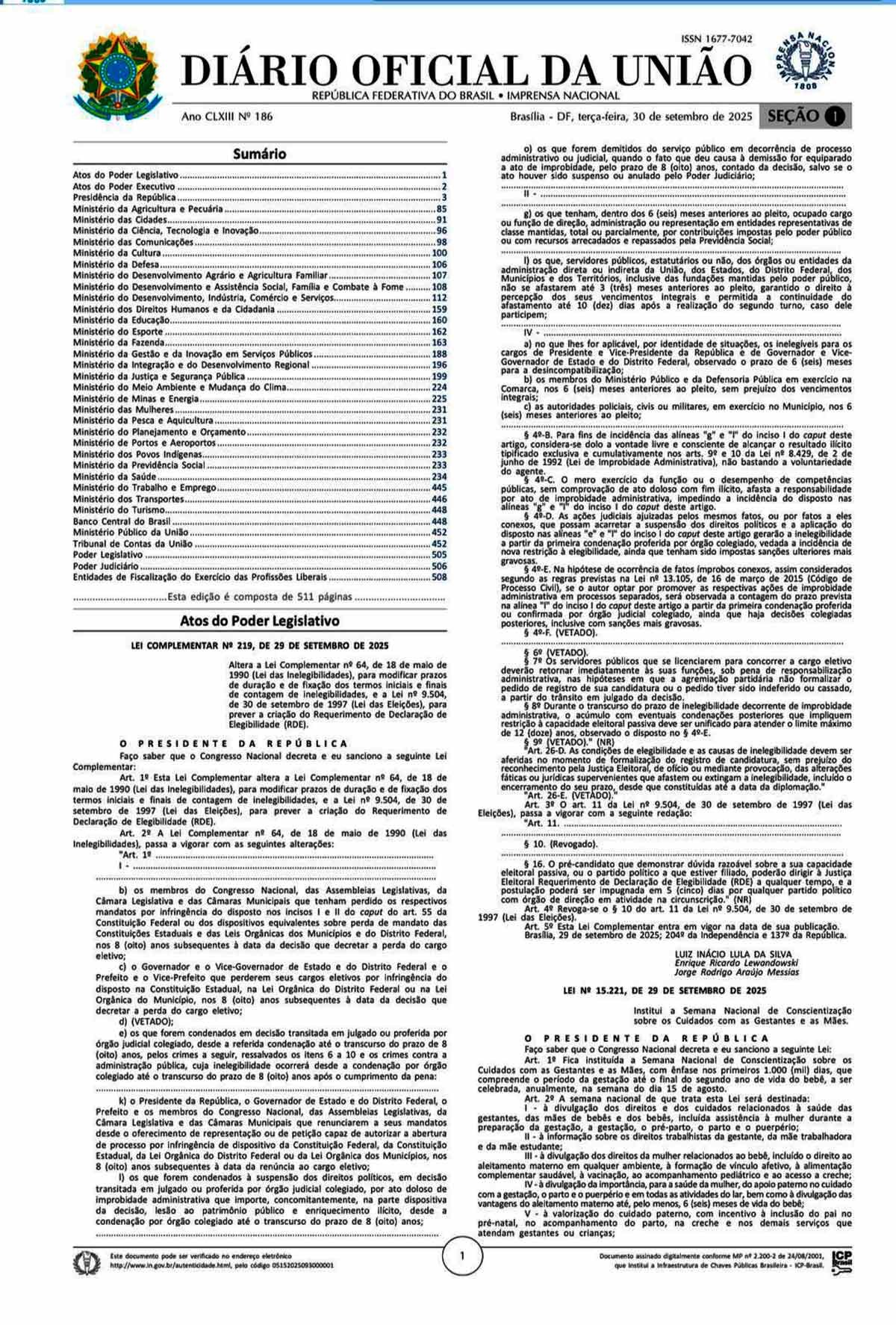 O cenário político do Distrito Federal ganhou novos contornos com a promulgação da Lei Complementar nº 219/2025, que altera prazos e regras de inelegibilidade previstos na Lei Complementar nº 64/1990 (Lei das Inelegibilidades).