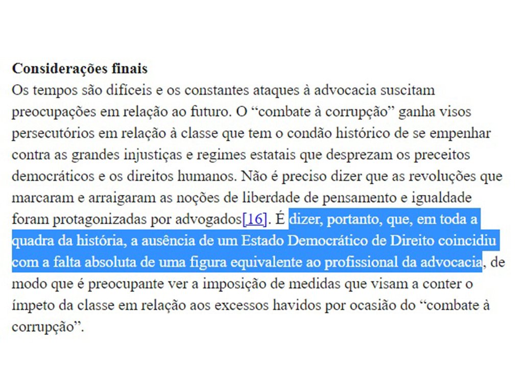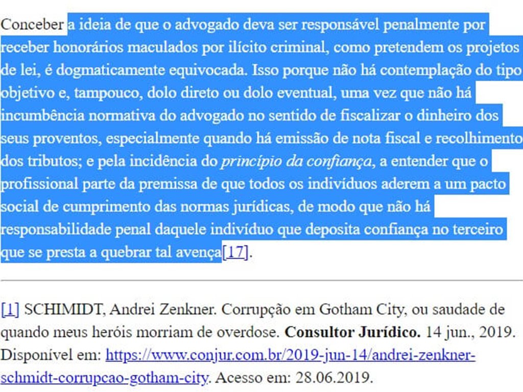 O artigo de onde trechos foram tirados sem crédito foi publicado em 1º de setembro de 2019 no site Consultor Jurídico e fala sobre o